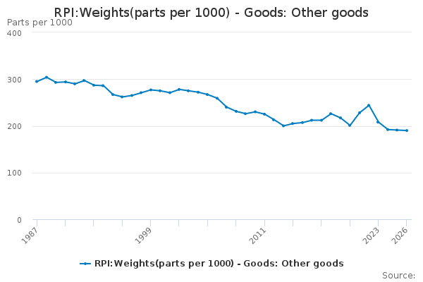 Download this time seriesRPI:Weights(parts per 1000) - Goods: Other goods