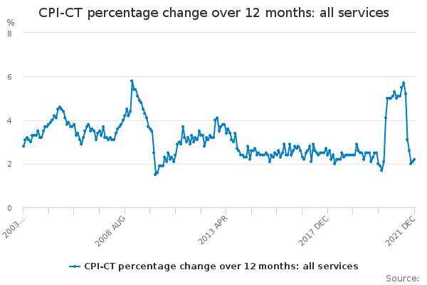 Download this time seriesCPI-CT percentage change over 12 months: all services