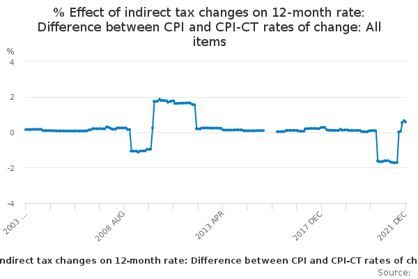 Download this time series% Effect of indirect tax changes on 12-month rate: Difference between CPI and CPI-CT rates of change: All items