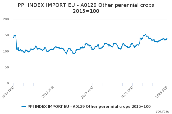 Download this time seriesPPI INDEX IMPORT EU - A0129 Other perennial crops 2015=100
