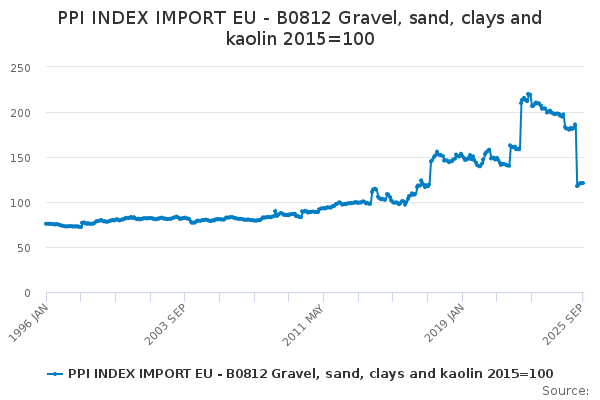 Download this time seriesPPI INDEX IMPORT EU - B0812 Gravel, sand, clays and kaolin 2015=100