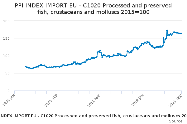 Download this time seriesPPI INDEX IMPORT EU - C1020 Processed and preserved fish, crustaceans and molluscs 2015=100