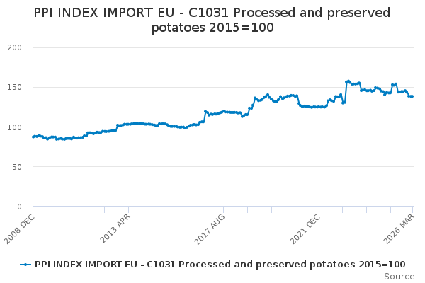 Download this time seriesPPI INDEX IMPORT EU - C1031 Processed and preserved potatoes 2015=100