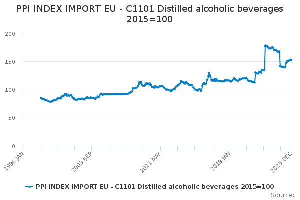 Download this time seriesPPI INDEX IMPORT EU - C1101 Distilled alcoholic beverages 2015=100