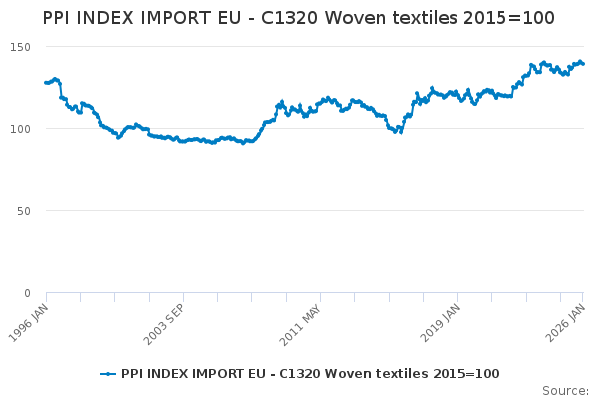 Download this time seriesPPI INDEX IMPORT EU - C1320 Woven textiles 2015=100