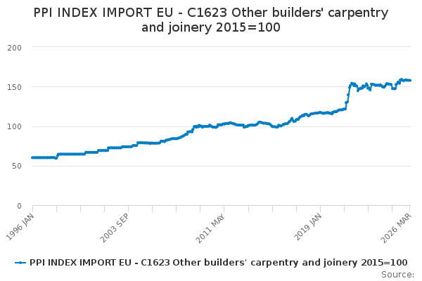 Download this time seriesPPI INDEX IMPORT EU - C1623 Other builders' carpentry and joinery 2015=100