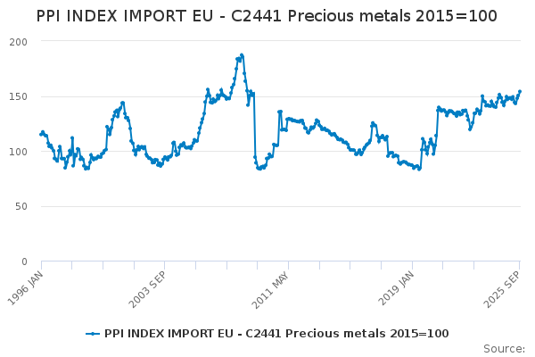 Download this time seriesPPI INDEX IMPORT EU - C2441 Precious metals 2015=100