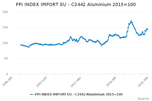 Download this time seriesPPI INDEX IMPORT EU - C2442 Aluminium 2015=100