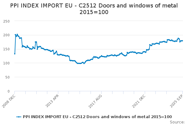 Download this time seriesPPI INDEX IMPORT EU - C2512 Doors and windows of metal 2015=100