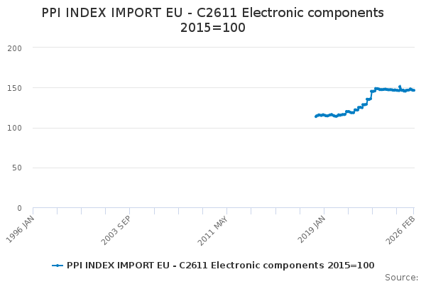 Download this time seriesPPI INDEX IMPORT EU - C2611 Electronic components 2015=100