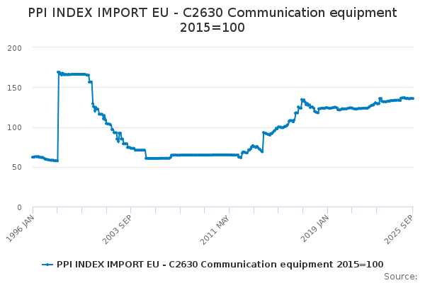 Download this time seriesPPI INDEX IMPORT EU - C2630 Communication equipment 2015=100