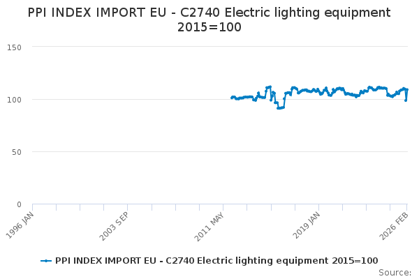 Download this time seriesPPI INDEX IMPORT EU - C2740 Electric lighting equipment 2015=100