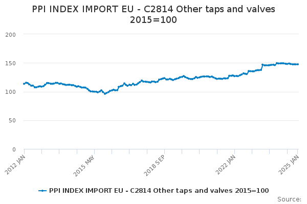 Download this time seriesPPI INDEX IMPORT EU - C2814 Other taps and valves 2015=100