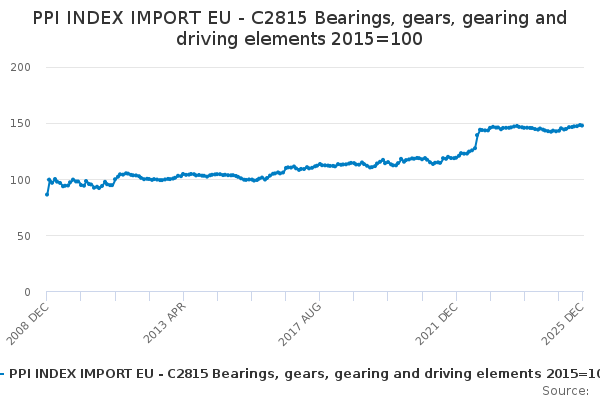 Download this time seriesPPI INDEX IMPORT EU - C2815 Bearings, gears, gearing and driving elements 2015=100