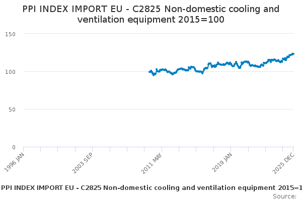 Download this time seriesPPI INDEX IMPORT EU - C2825 Non-domestic cooling and ventilation equipment 2015=100