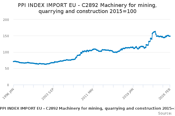 Download this time seriesPPI INDEX IMPORT EU - C2892 Machinery for mining, quarrying and construction 2015=100
