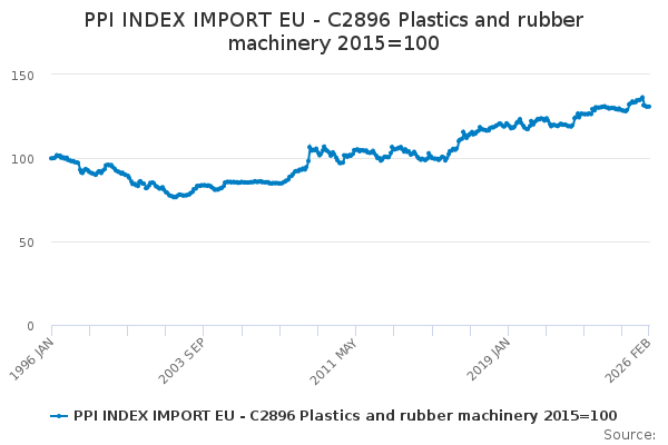 Download this time seriesPPI INDEX IMPORT EU - C2896 Plastics and rubber machinery 2015=100