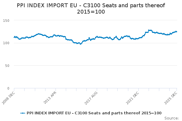 Download this time seriesPPI INDEX IMPORT EU - C3100 Seats and parts thereof 2015=100