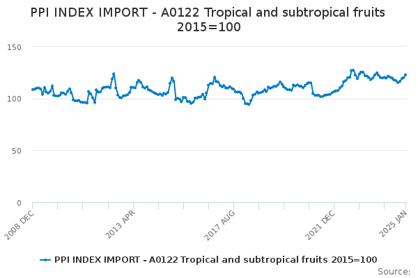 Download this time seriesPPI INDEX IMPORT - A0122 Tropical and subtropical fruits 2015=100