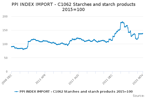 Download this time seriesPPI INDEX IMPORT - C1062 Starches and starch products 2015=100