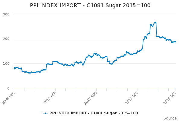 Download this time seriesPPI INDEX IMPORT - C1081 Sugar 2015=100