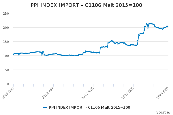Download this time seriesPPI INDEX IMPORT - C1106 Malt 2015=100