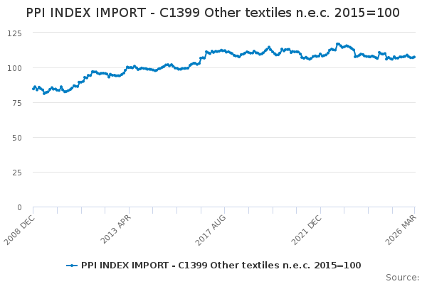 Download this time seriesPPI INDEX IMPORT - C1399 Other textiles n.e.c. 2015=100