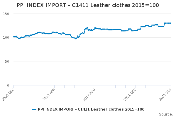 Download this time seriesPPI INDEX IMPORT - C1411 Leather clothes 2015=100