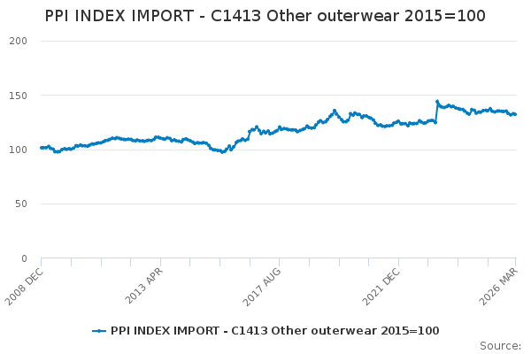 Download this time seriesPPI INDEX IMPORT - C1413 Other outerwear 2015=100