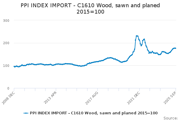 Download this time seriesPPI INDEX IMPORT - C1610 Wood, sawn and planed 2015=100