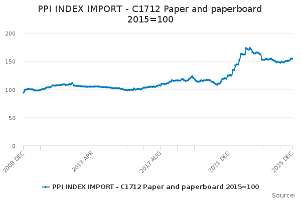 Download this time seriesPPI INDEX IMPORT - C1712 Paper and paperboard 2015=100