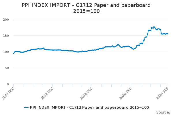 Download this time seriesPPI INDEX IMPORT - C1712 Paper and paperboard 2015=100