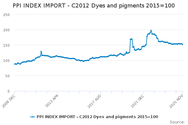 Download this time seriesPPI INDEX IMPORT - C2012 Dyes and pigments 2015=100