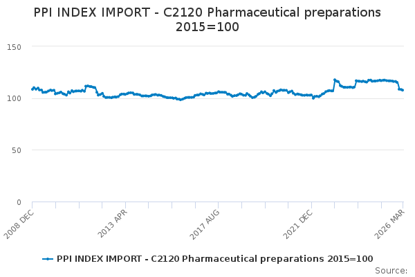 Download this time seriesPPI INDEX IMPORT - C2120 Pharmaceutical preparations 2015=100