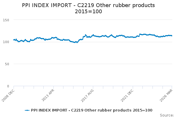 Download this time seriesPPI INDEX IMPORT - C2219 Other rubber products 2015=100