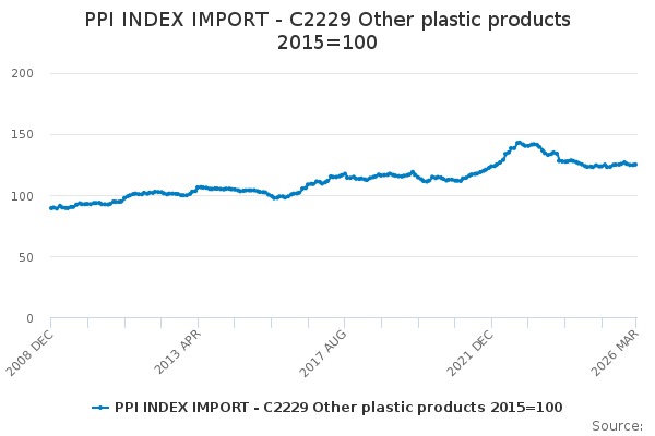 Download this time seriesPPI INDEX IMPORT - C2229 Other plastic products 2015=100