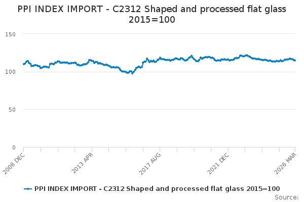 Download this time seriesPPI INDEX IMPORT - C2312 Shaped and processed flat glass 2015=100