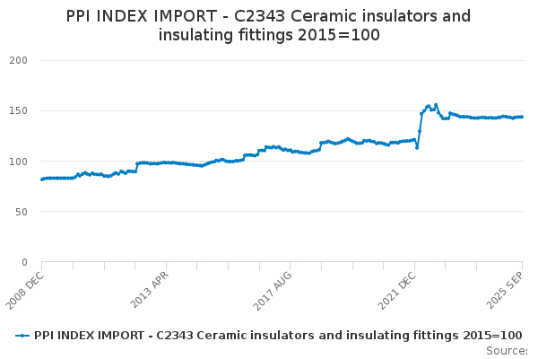 Download this time seriesPPI INDEX IMPORT - C2343 Ceramic insulators and insulating fittings 2015=100