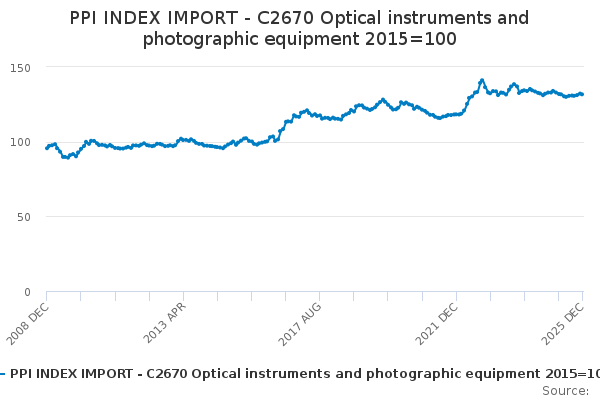 Download this time seriesPPI INDEX IMPORT - C2670 Optical instruments and photographic equipment 2015=100