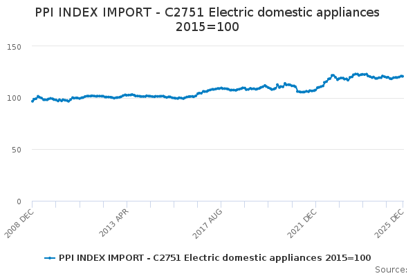 Download this time seriesPPI INDEX IMPORT - C2751 Electric domestic appliances 2015=100