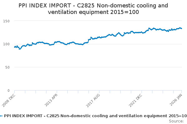 Download this time seriesPPI INDEX IMPORT - C2825 Non-domestic cooling and ventilation equipment 2015=100