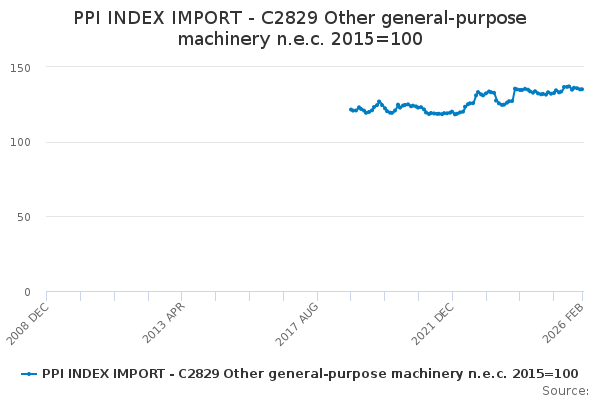 Download this time seriesPPI INDEX IMPORT - C2829 Other general-purpose machinery n.e.c. 2015=100