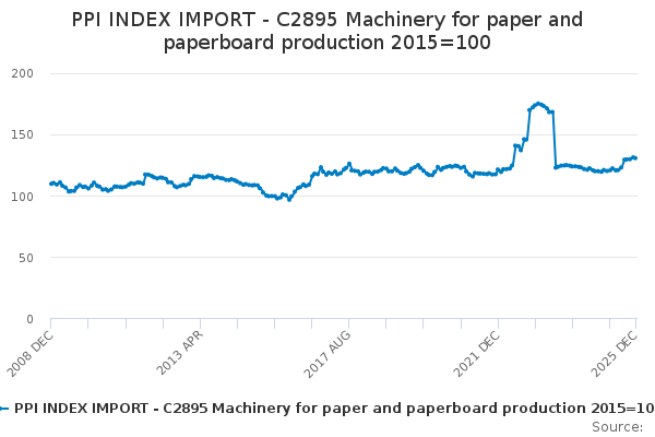 Download this time seriesPPI INDEX IMPORT - C2895 Machinery for paper and paperboard production 2015=100