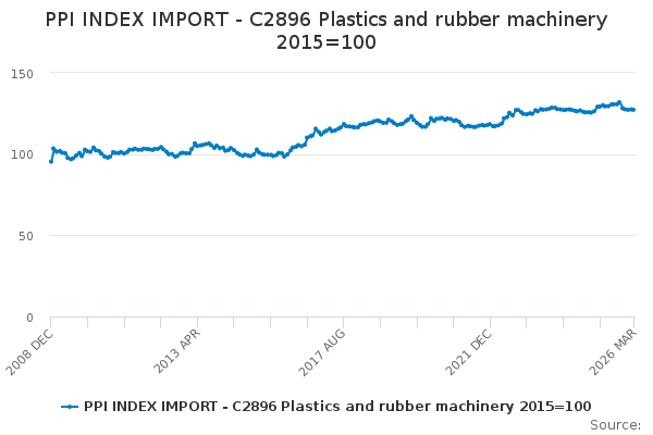 Download this time seriesPPI INDEX IMPORT - C2896 Plastics and rubber machinery 2015=100