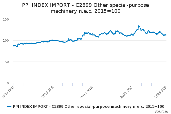 Download this time seriesPPI INDEX IMPORT - C2899 Other special-purpose machinery n.e.c. 2015=100