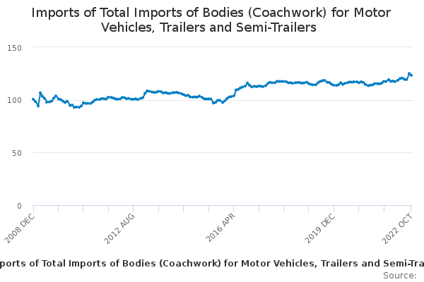 Download this time seriesImports of Total Imports of Bodies (Coachwork) for Motor Vehicles, Trailers and Semi-Trailers