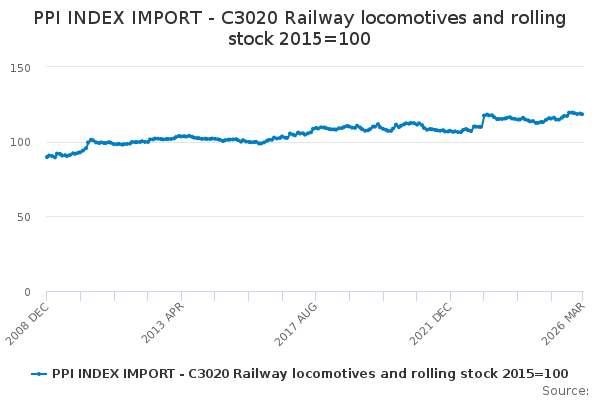 Download this time seriesPPI INDEX IMPORT - C3020 Railway locomotives and rolling stock 2015=100
