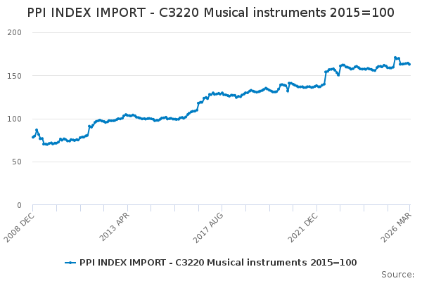 Download this time seriesPPI INDEX IMPORT - C3220 Musical instruments 2015=100
