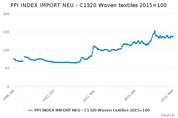 Download this time seriesPPI INDEX IMPORT NEU - C1320 Woven textiles 2015=100