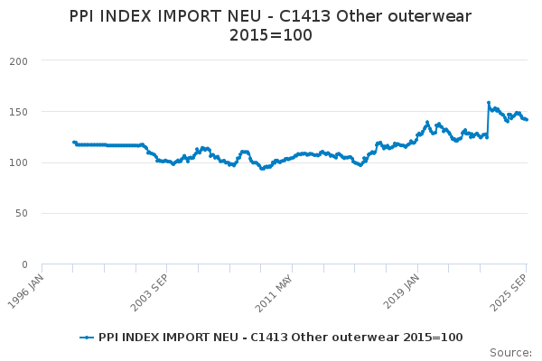 Download this time seriesPPI INDEX IMPORT NEU - C1413 Other outerwear 2015=100